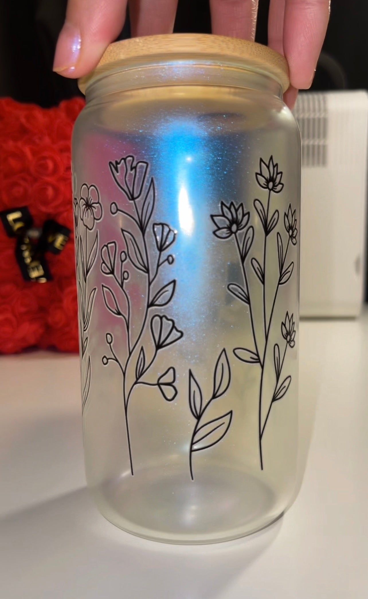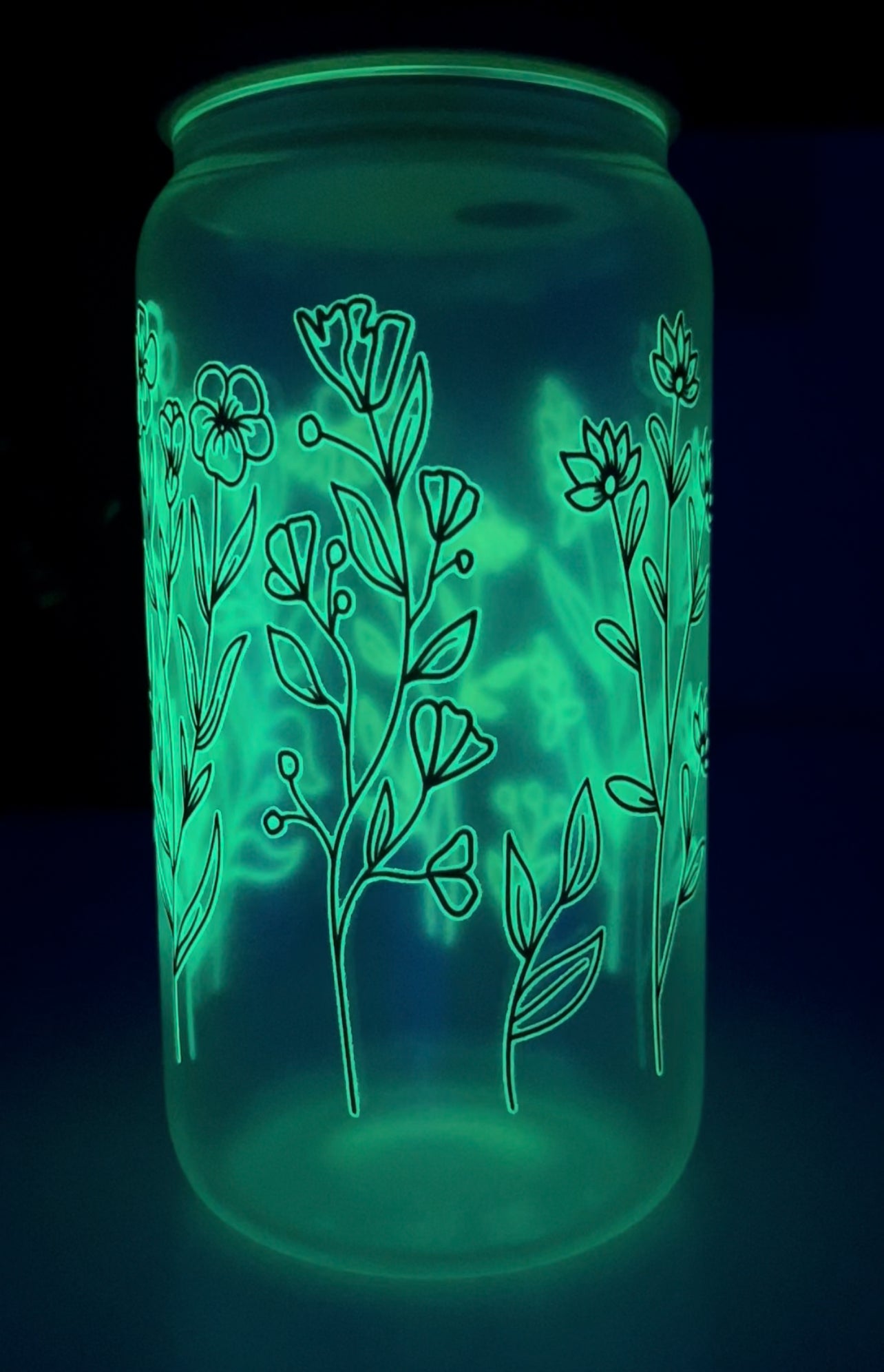"Light up the party with this Flower Glow In the Dark Beer Can! With its unique flower design, this can will bring a touch of fun and quirkiness to any gathering. Plus, it glows in the dark for added excitement. Cheers!"
