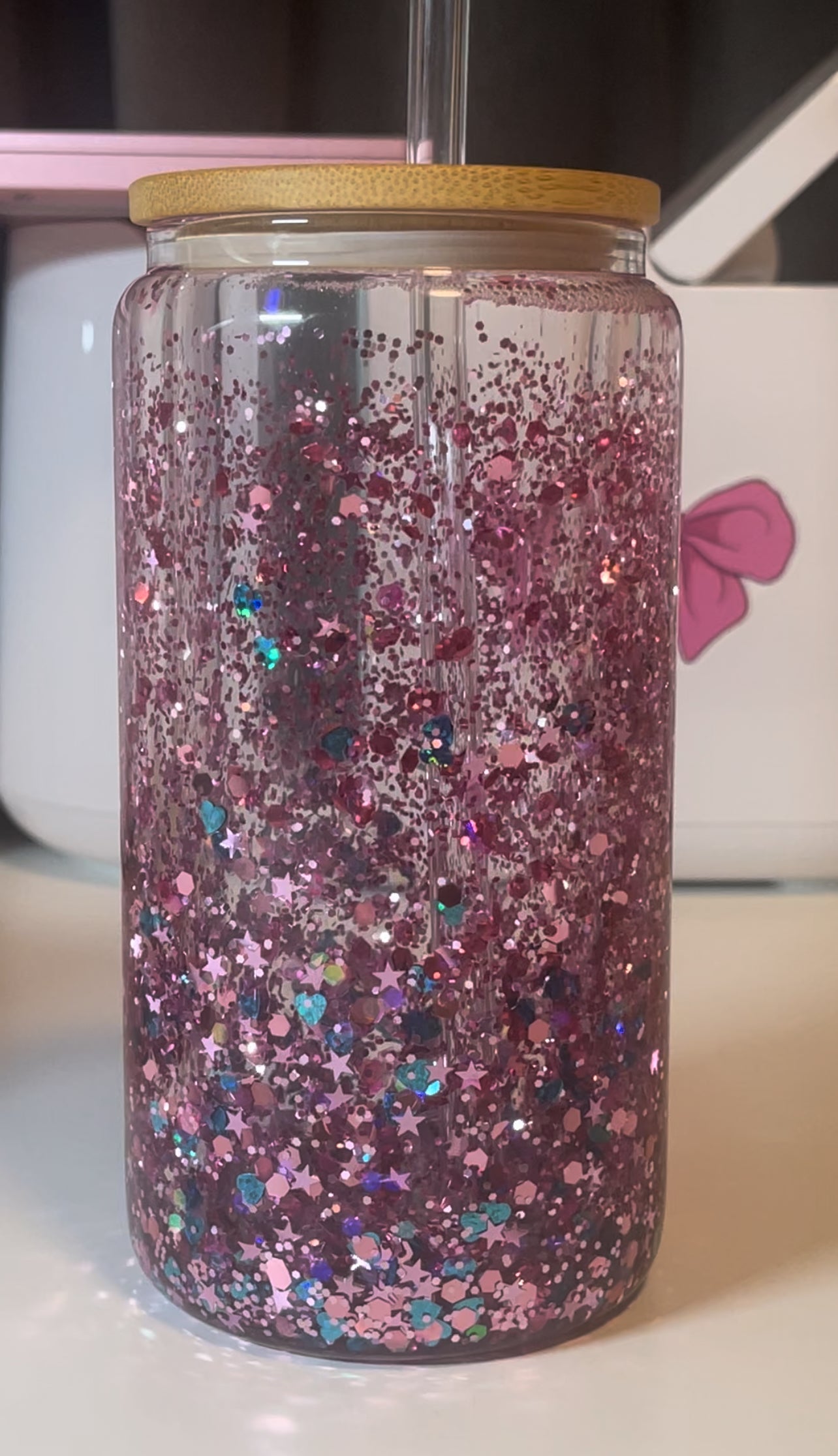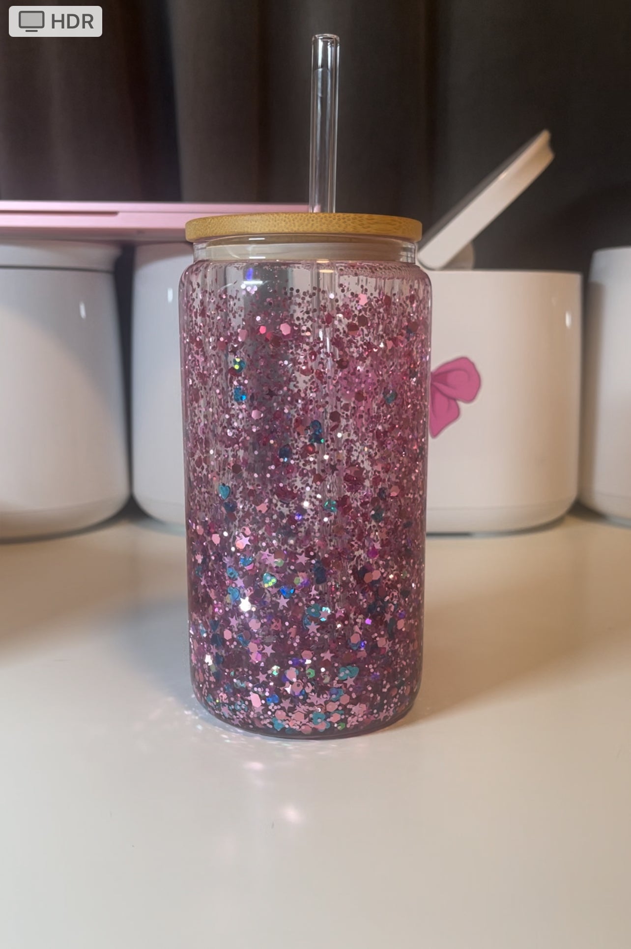 Our Glitter Snow Globe Tumblers are made out of glass and non toxic ingredients